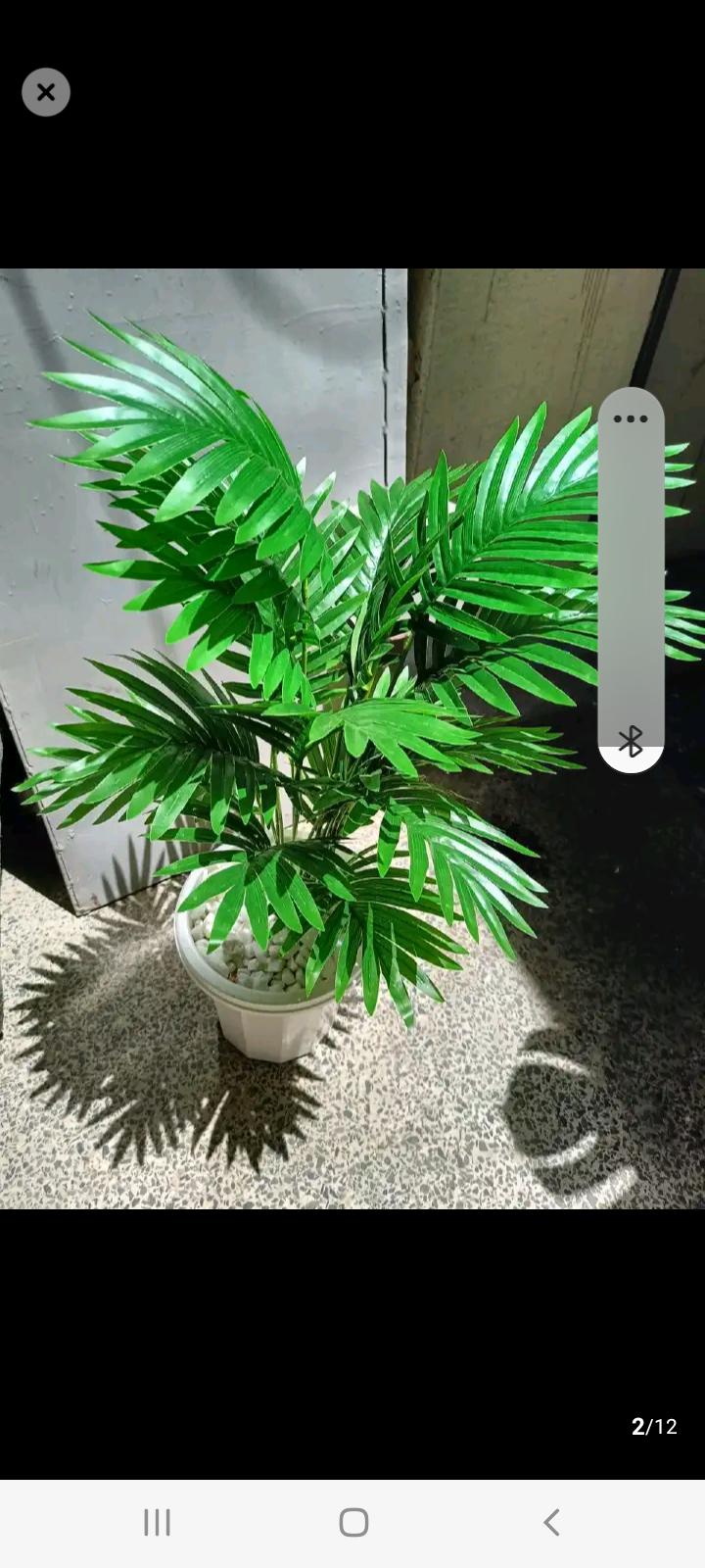 Green flower plant and a white vase