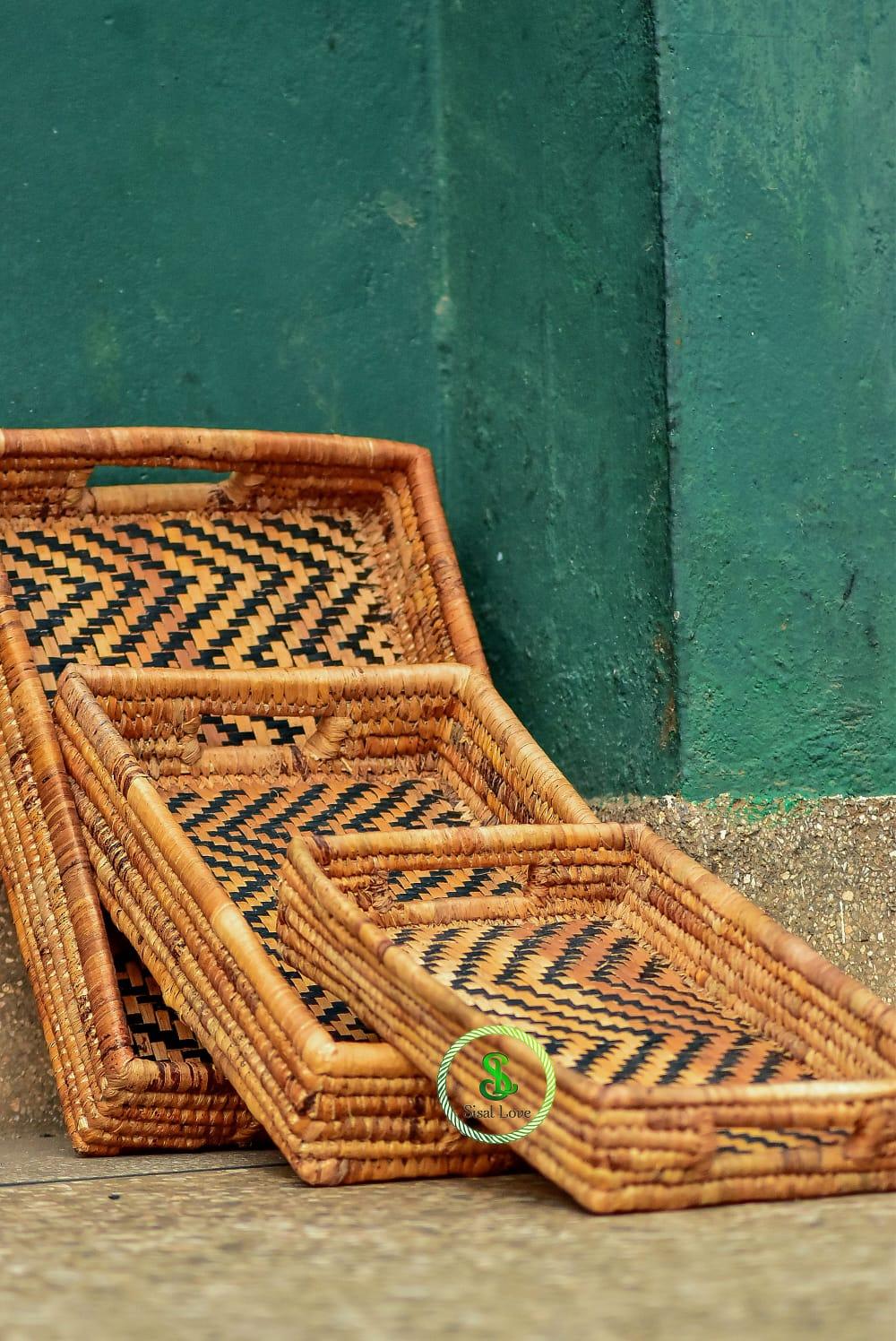 This three-in-one set of Raffia Trays come in handy in organizing Kitchen Items, and even in Food presentation. They are Made from Durable Sustainable Material which ensures functionality and sustainability.
